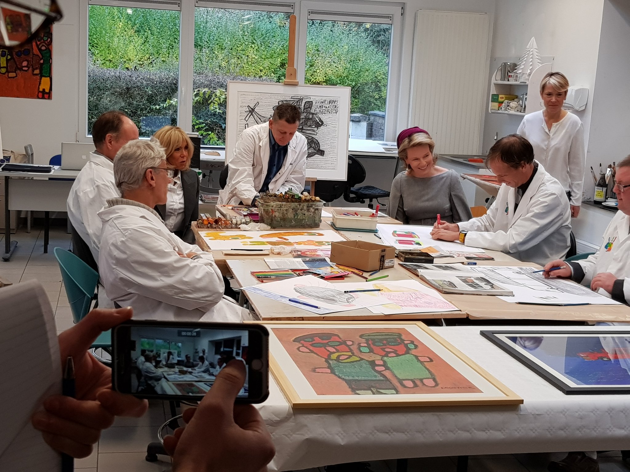 A great day of strong emotions at La Maisonnée on Tuesday, November 20, 2018, where Her Majesty Queen Mathilde and Mrs Macron were received. The visit was supposed to last an hour but the visitors stayed an hour and a half, illustrating a clear interest in the people and the work! As a consequence, they arrived late at the official lunch that was prepared for them in the city of Leuven.