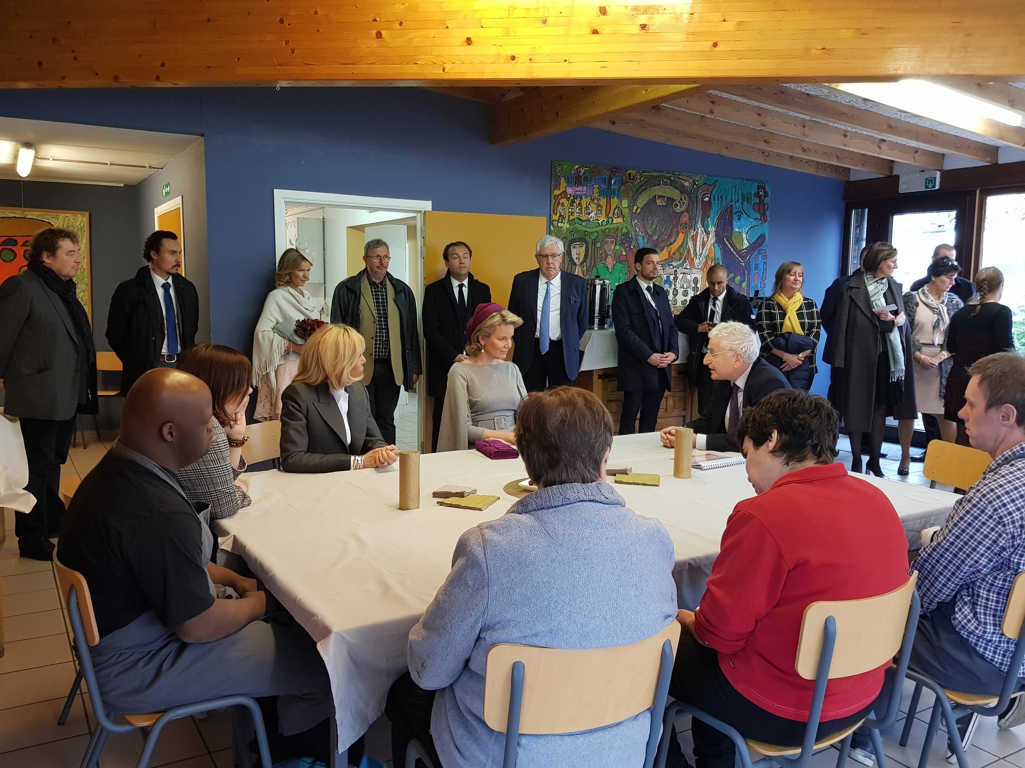 As one would expect, Her Majesty the Queen showed a lot of interest in the creation of new houses in Belgium, while Mrs. Macron focused her questions on the aspect of mental illness, an area where there is still much work to be done in France.