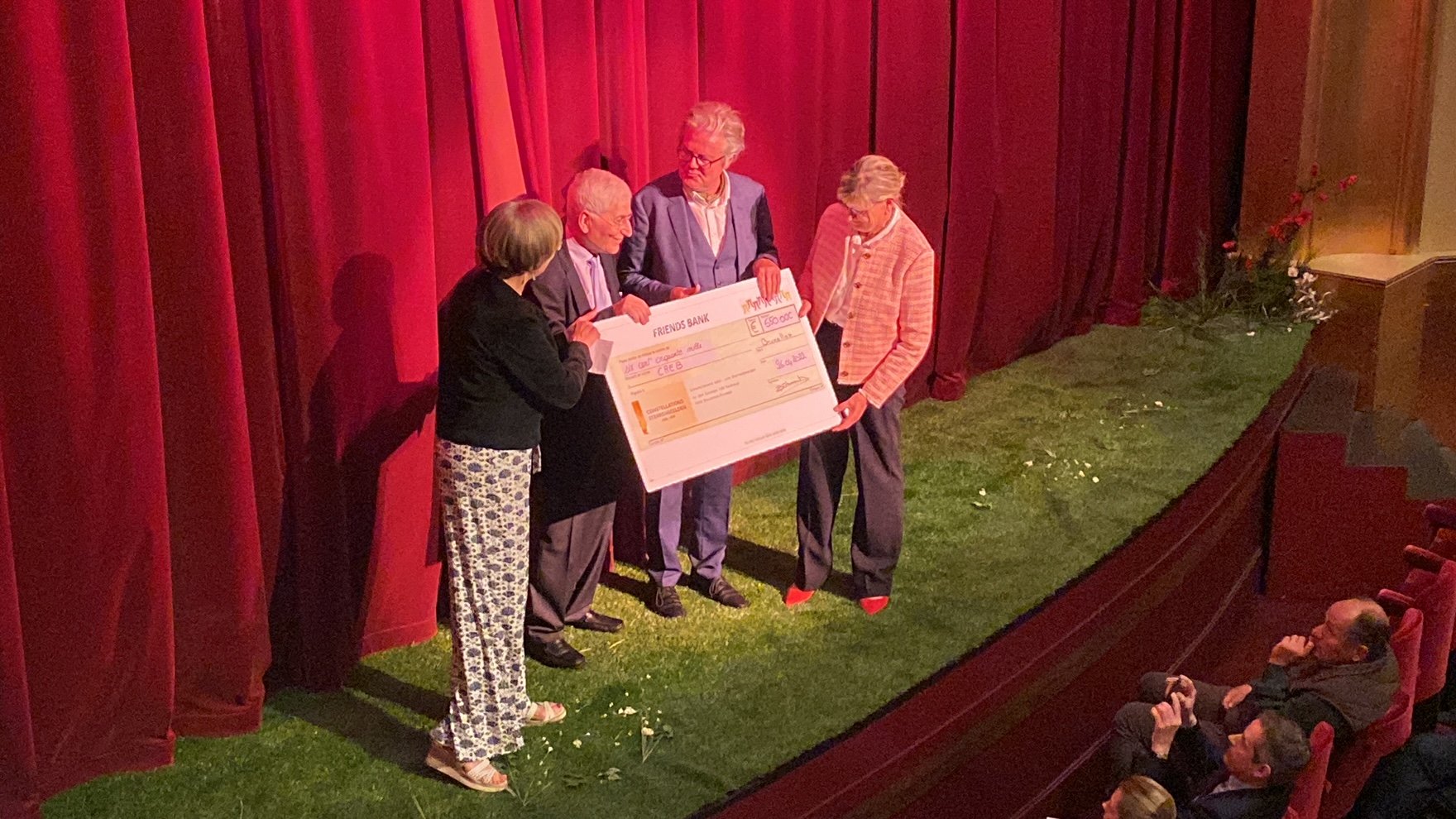 Mr. Alain Verriest and Mrs. Danielle Van Den Bossche, respectively president of the board of directors of the ASBL Creb and director of the Creb Woluwe for many years and responsible for the reconstruction project, received the cheque to the hearty applause of the audience.