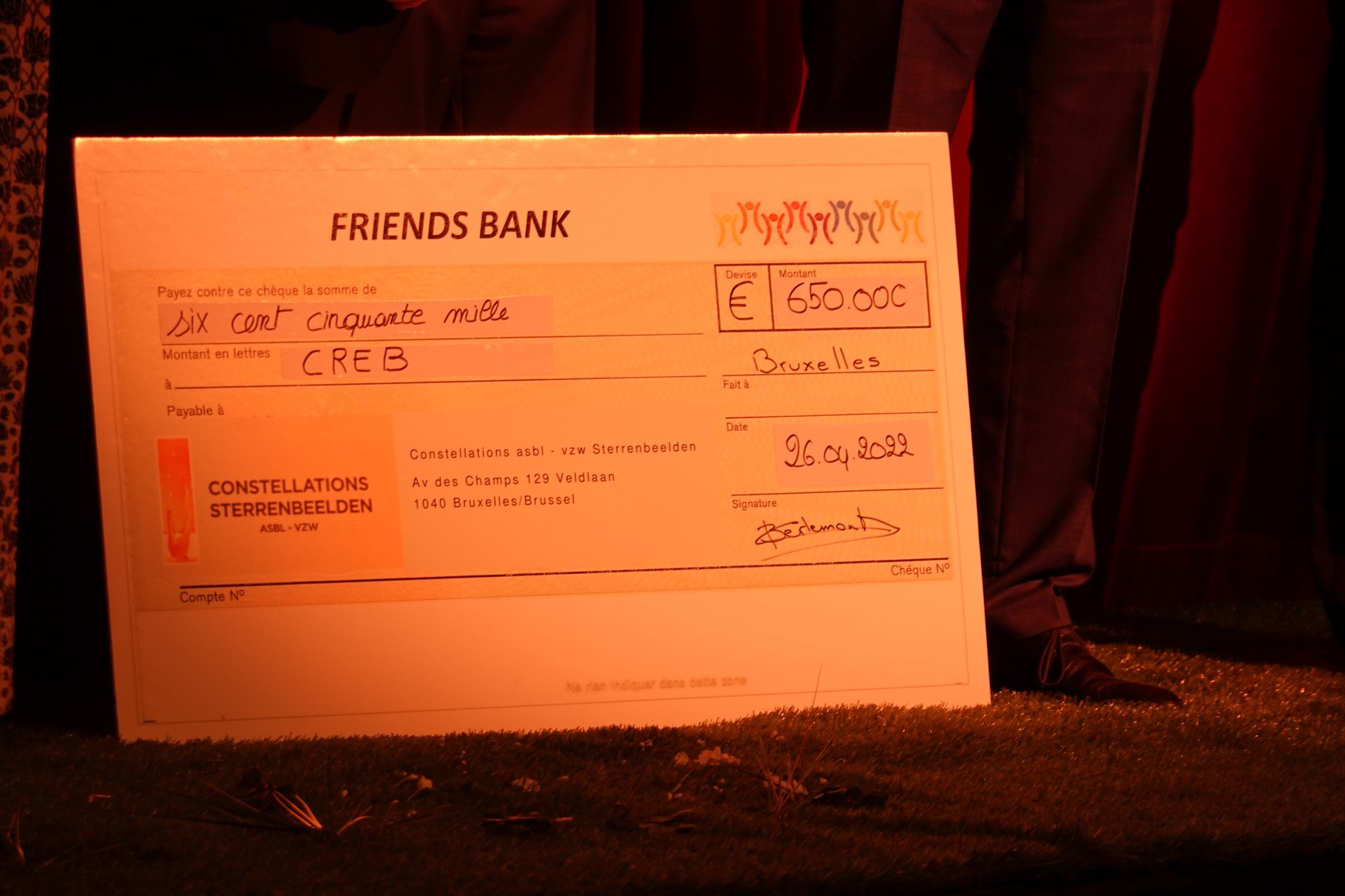 The most spectacular event of the evening was the presentation of a cheque for €650,000 to the ASBL Creb for the reconstruction of Creb Woluwe. The day and residential centres of Creb Woluwe currently accommodate 55 and 27 multi-disabled children respectively. The presence of asbestos makes reconstruction absolutely necessary.